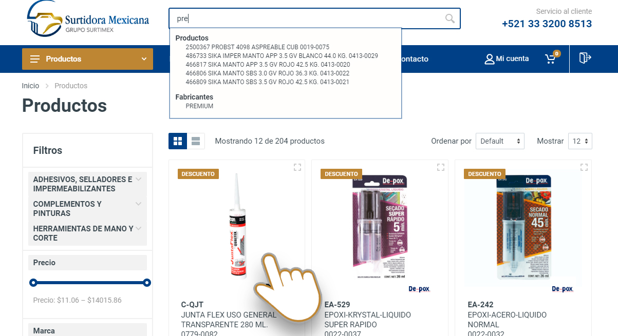 Ingresa el nombre o código del producto en el buscador que se encuenta en la parte superior de la página, o busca en nuestro catálogo de productos.