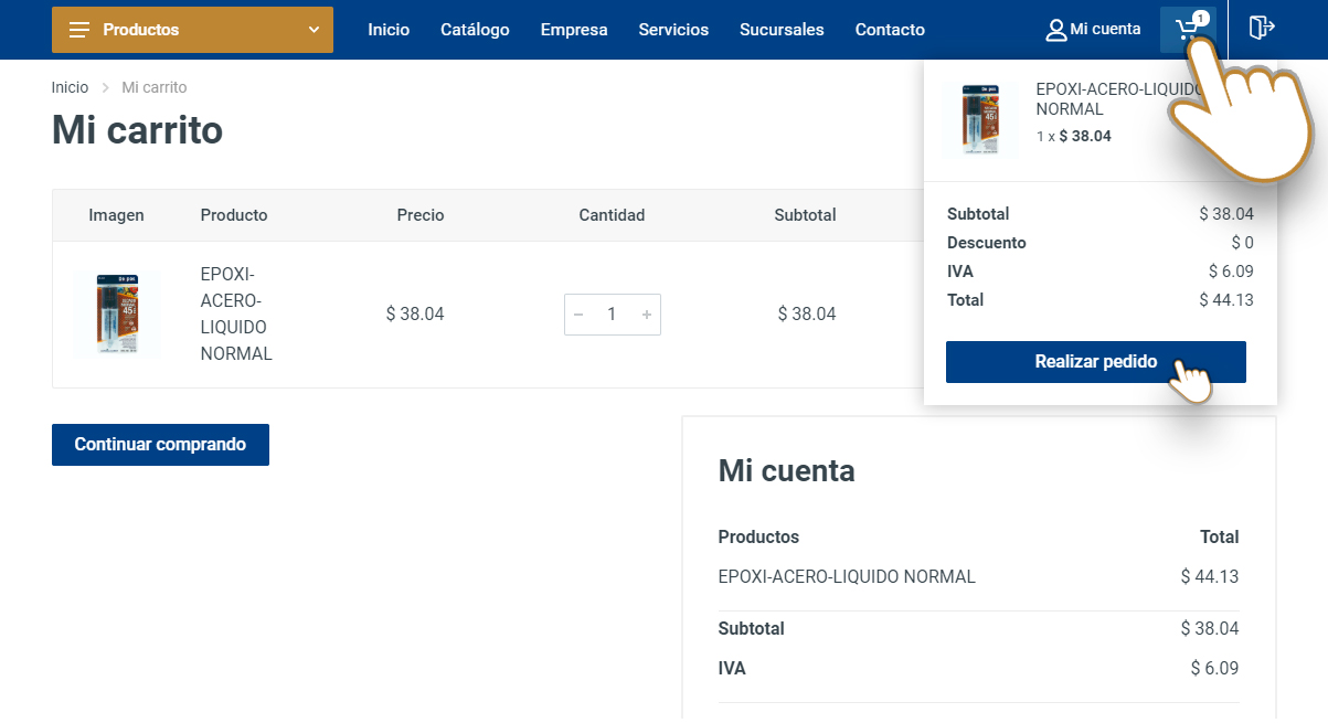 Consulta los productos en tu carrito antes de realizar tu orden; Si lo necesitas, puedes agregar o quitar productos y modificar cantidades.